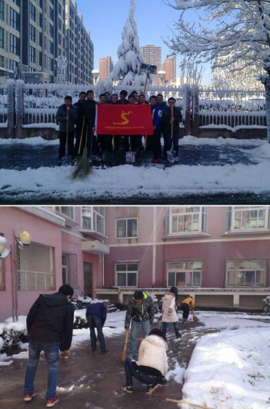 2013年3月20日上午,石油工程學院學生開展“學雷鋒義務掃雪”活動。