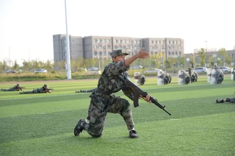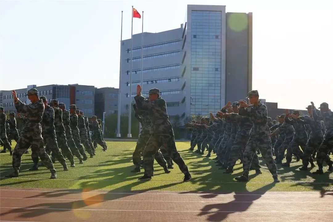 在克拉瑪依校區的紅旗操場上新生認真參加入學軍訓
