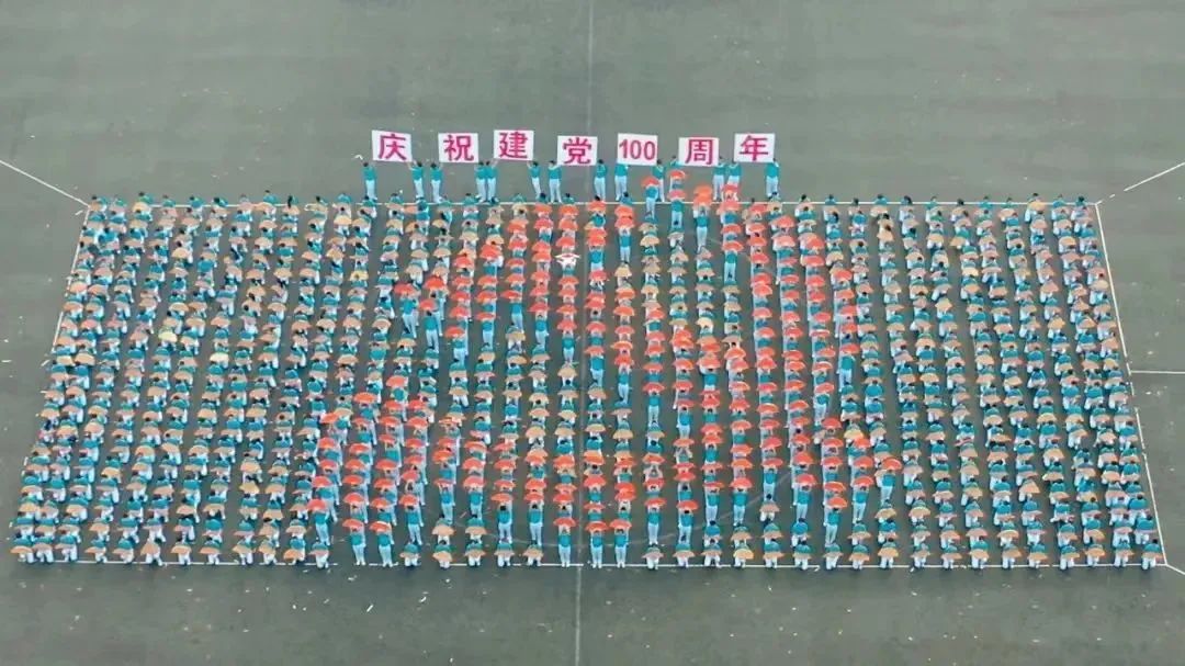 2021年春季田徑運動會上,師生為建黨百年準備的團體操方陣表演