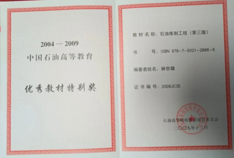 中國石油大學(北京)“創校功勛獎”獲得者林世雄教授,一生潛心學術,造詣精深,長期擔任教研室主任、系主任,教學孜孜不倦,育人春風化雨,主編的《石油煉制工程》榮獲“全國高校優秀教材獎”,是著名的石油教育家;他尊重科學,崇尚實踐,潛心學術,參與的“大慶常壓渣油催化裂化技術開發”科研項目獲國家科技進步一等獎,參與籌建重質油加工國家實驗室建設并擔任首屆實驗室主任,是著名的重質油加工專家。