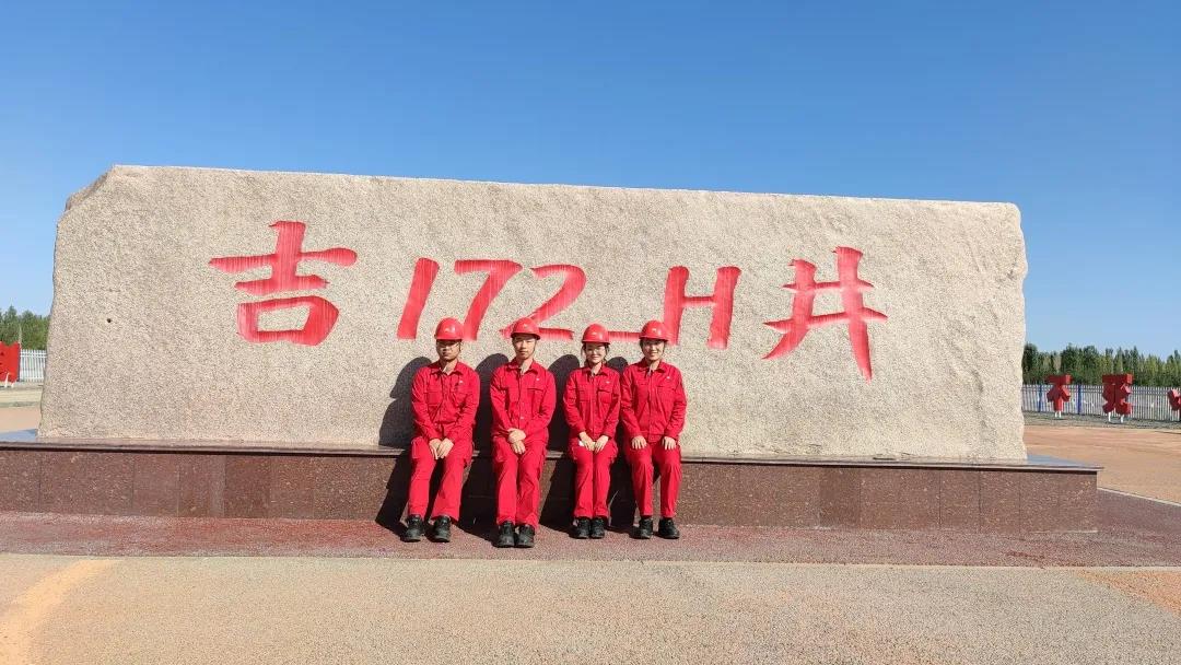袁麗霞(右一)在吉慶油田作業區國家級陸相頁巖油示范區吉172-H功勛井