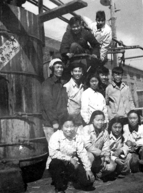 1960年參加北京化工廠技術革新的同學與工人師傅合影