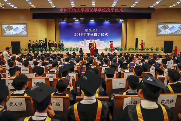 6月21日至6月22日,中國(guó)石油大學(xué)(北京)2018年學(xué)位授予儀式隆重舉行。在一天半的時(shí)間里,在莊重?zé)崃业臍夥罩校iL(zhǎng)張來(lái)斌教授為順利完成學(xué)業(yè)獲得博士、碩士、學(xué)士學(xué)位的4029名2018屆畢業(yè)生一一親授學(xué)位證書(shū)。博士生導(dǎo)師為自己的博士生撥穗,并留下珍貴合影。