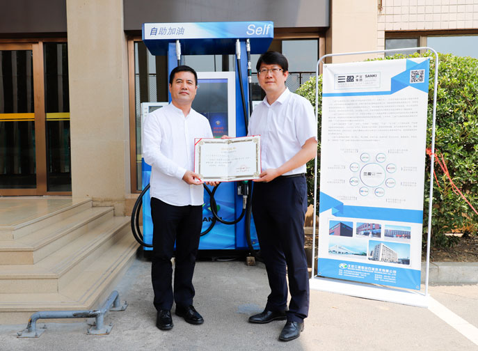 北京三盈聯(lián)合石油技術(shù)公司在峰會期間為石大捐贈了自助加油機(jī),韓尚峰代表學(xué)校接受捐贈,相關(guān)職能部門負(fù)責(zé)人參加捐贈儀式。