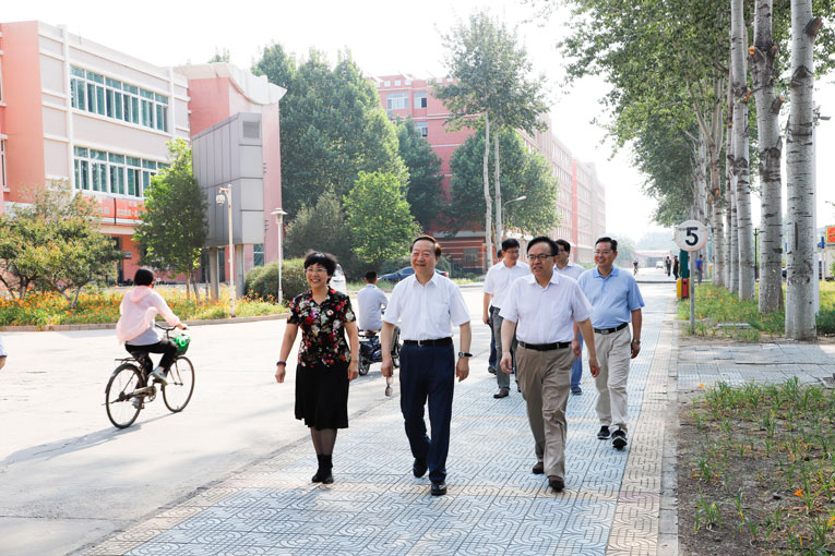 會前,李毅中在山紅紅、張來斌的陪同下參觀了石大東校園。