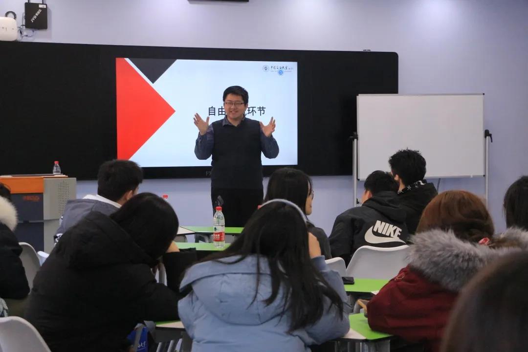 在該環節中,趙辰校友以幽默的表達方式向大家分享了自己有關創業、學習、情感三方面的經歷,同時也向大家介紹了許多自己離校之后的生活,為同學們對未來的規劃提供了一定的建議與幫助。學習與生活中不乏大道理和大智慧,但與前輩交流中收獲的小智慧也總能啟迪我們更好的前進。
