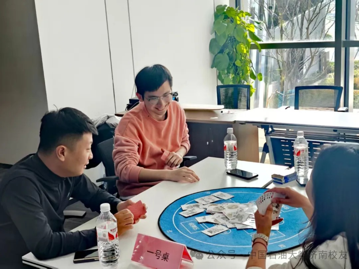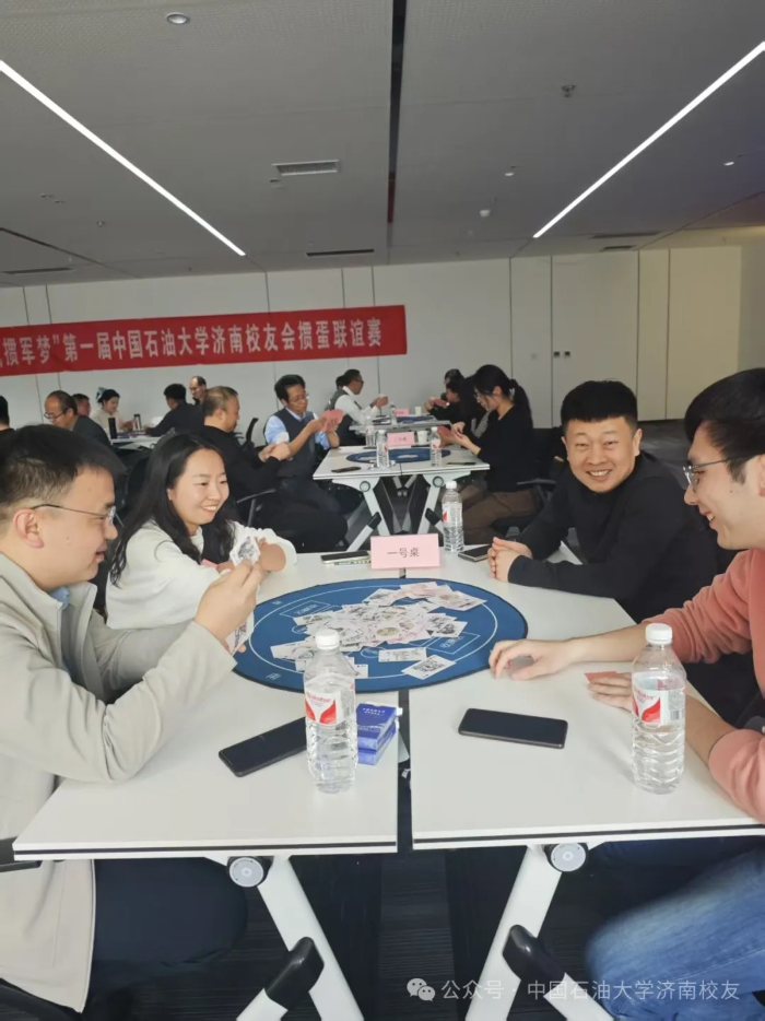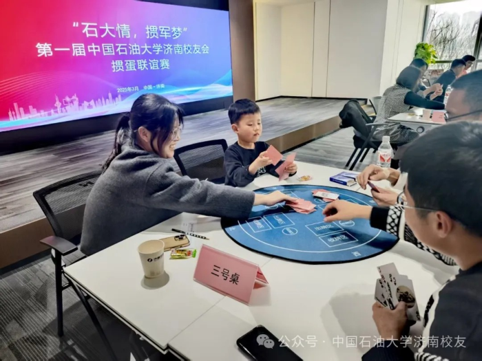 春水初生,燕語呢喃。2025年3月9日下午,“石大情,摜軍夢”第一屆中國石油大學濟南校友會摜蛋聯誼賽在濟高校友會客廳鳴鑼開戰。這場醞釀已久的智慧盛宴,2024年初便埋下伏筆:校友棋牌交流群星火燎原;2025年新春更見匠心:以校友鋼筆畫作品為圖案的定制牌具驚艷亮相,將石油人的藝術情懷鐫刻于方寸之間。