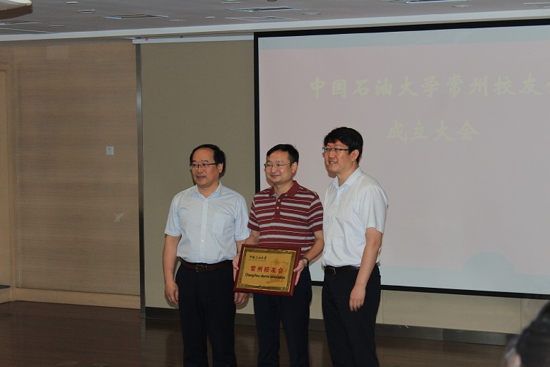 韓尚峰、姚軍為中國石油大學常州校友的成立授牌。