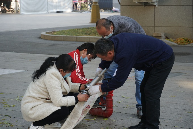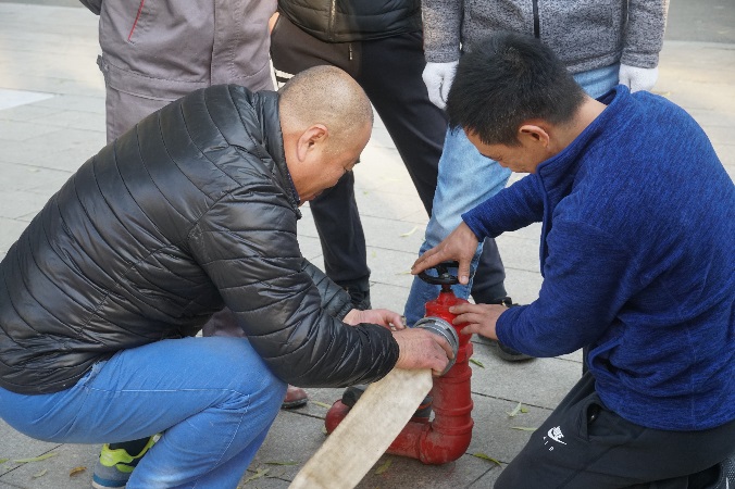 在滅火器操作考核中,參訓(xùn)人員按照“一提二拔三壓四噴”的標(biāo)準(zhǔn)流程撲滅火盆中的火;消火栓操作考核中,參訓(xùn)人員兩人一組,一人負(fù)責(zé)接消火栓,開啟閥門;另一人負(fù)責(zé)鋪水帶、連接水槍,出水至目標(biāo)。在操作過程中,參訓(xùn)人員進(jìn)一步熟悉了現(xiàn)場處理火情的正確流程,更好的掌握了滅火技能。