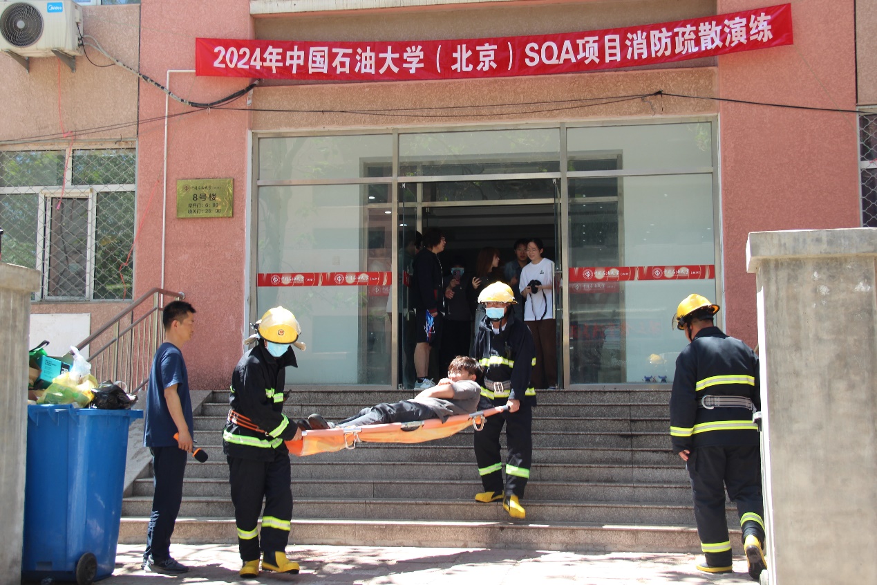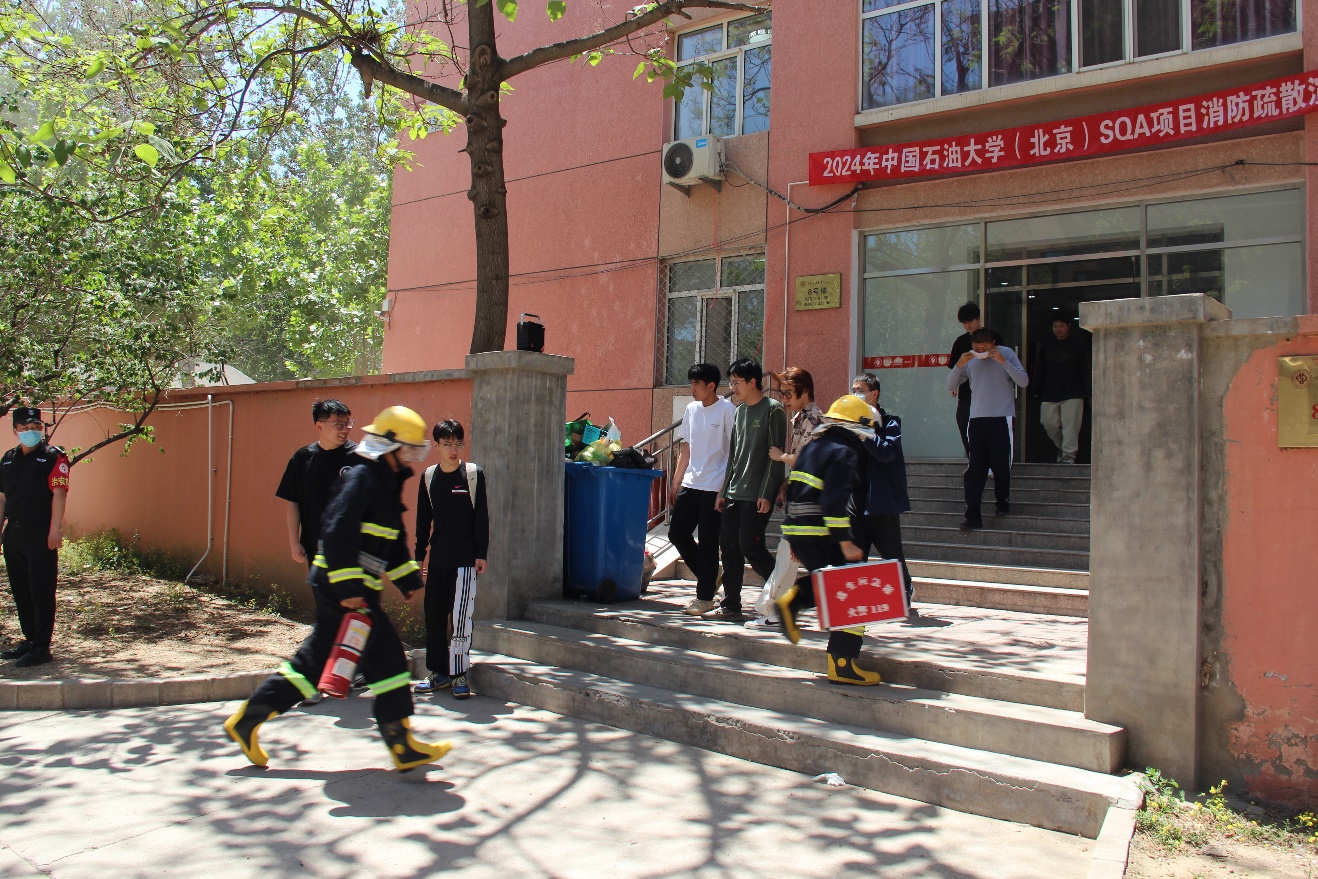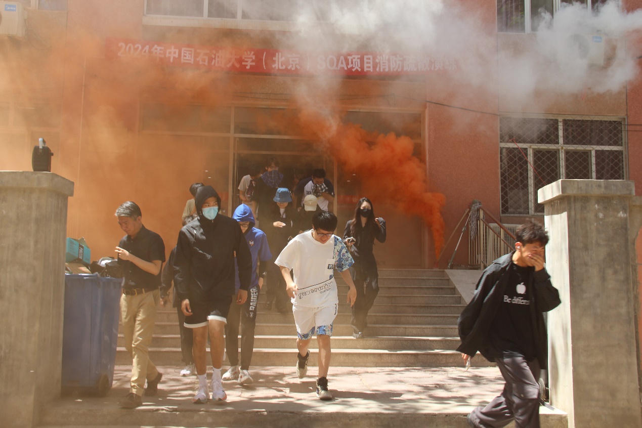 5月15日12時(shí)30分,保衛(wèi)處老師在能源公寓8號(hào)樓前宣布2024年中國石油大學(xué)(北京)SQA項(xiàng)目疏散演練正式開始。一聲令下,煙霧組釋放煙霧彈,8號(hào)樓頓時(shí)濃煙滾滾,與此同時(shí),值班人員第一時(shí)間撥打電話報(bào)告火情。學(xué)校應(yīng)急指揮中心接收到火災(zāi)報(bào)警信號(hào)后,立刻通知疏散組打開疏散門,啟動(dòng)疏散廣播,進(jìn)行人員疏散。宿舍內(nèi)學(xué)生聽到疏散警報(bào)后,迅速反應(yīng),用濕毛巾、口罩等捂住口鼻,在工作人員引導(dǎo)下彎腰低姿迅速有序疏散到指定區(qū)域。