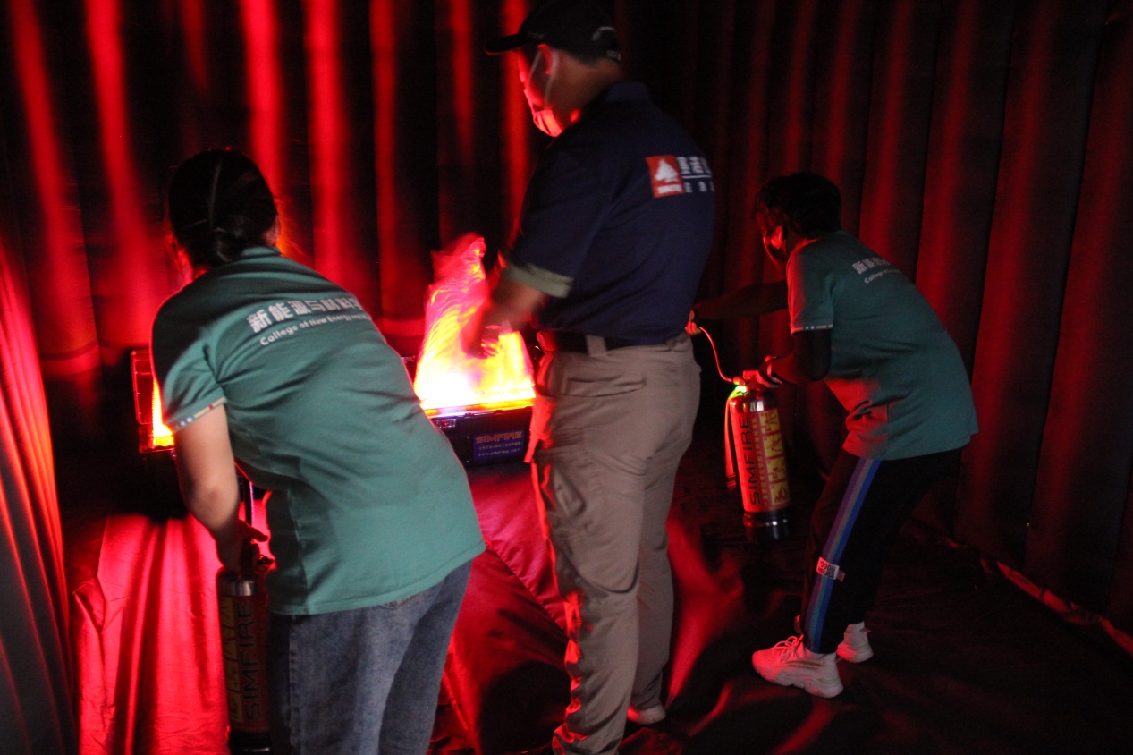 在消防安全常識講解區(qū),教官向同學(xué)們詳細講解了消防器材的使用方法和疏散逃生技巧。在模擬體驗區(qū),每名學(xué)生現(xiàn)場操作高仿真電子模擬滅火器進行考核,掌握使用滅火器的要領(lǐng),體驗火場滅火的技巧,而后紛紛彎腰低身,捂住口鼻,快速通過“濃煙彌漫”逃生通道,有序地抵達“安全地帶”,進一步熟悉掌握“彎腰、低姿、捂口鼻、看指示牌”的逃生要領(lǐng)。