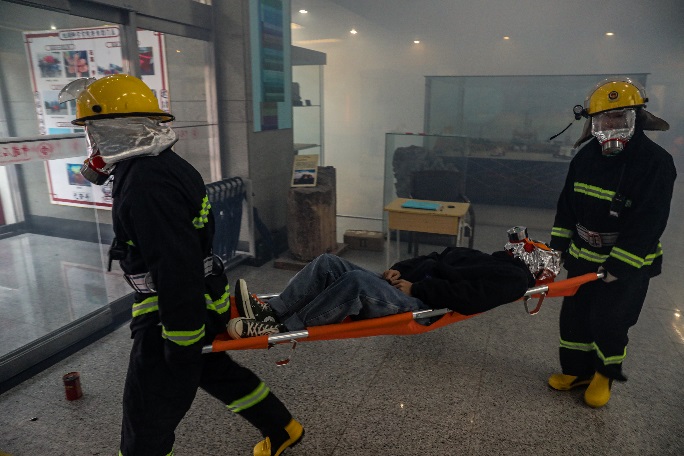 本次消防演練模擬的場景是學校地質樓實驗室因學生操作不慎引發火災,引燃相鄰樓層,并有零星火焰散落到裙樓屋頂引燃易燃物,造成火勢逐步擴大,需立即啟動應急預案,組織樓內人員疏散。