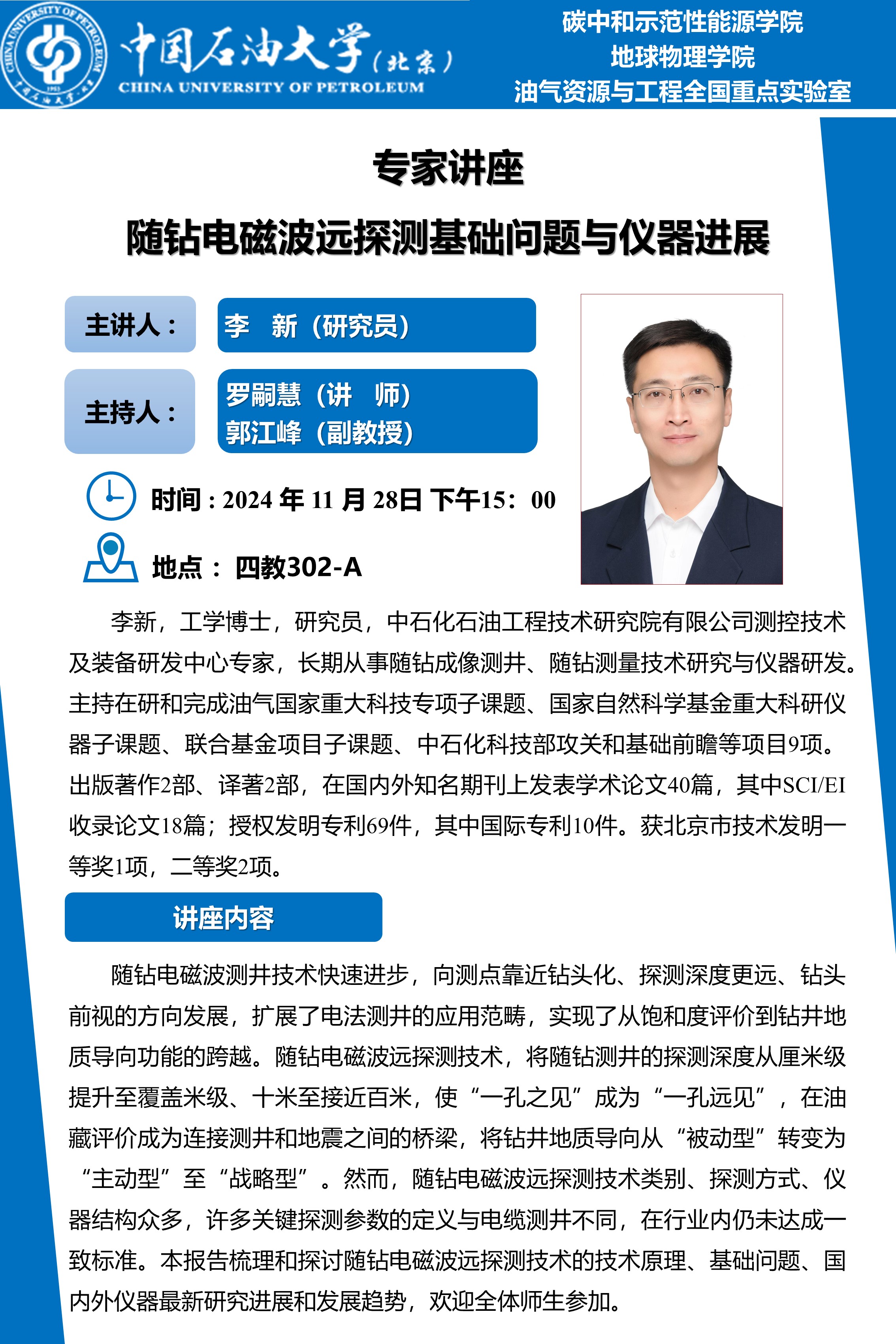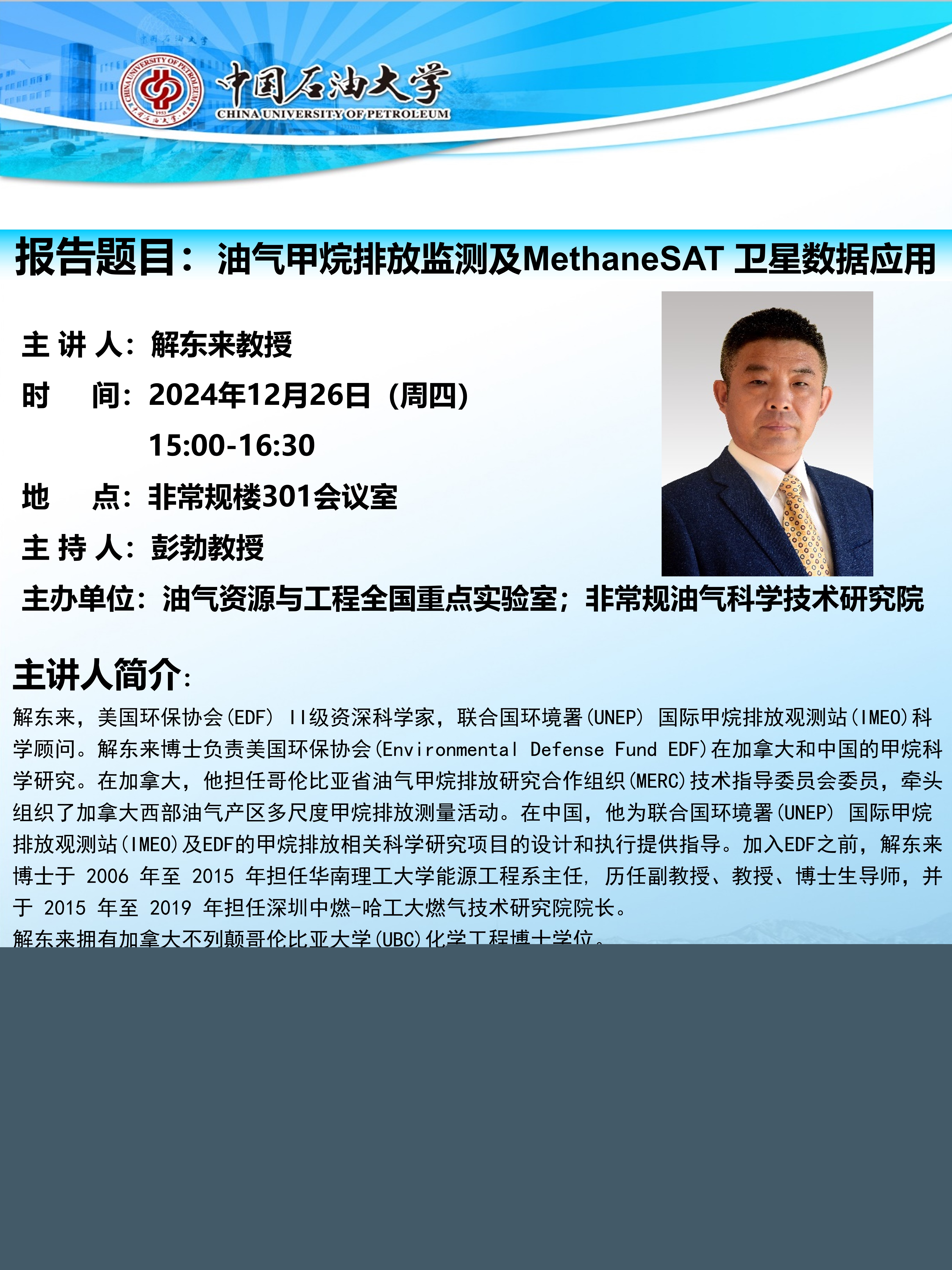 MORE+ 學院新聞 香港理工大學協理副校長王鉆開教授作《界面場匹配理論及能源應用》學術報告 Jun 27 , 2025 Jun 27 , 2025 香港理工大學協理副校長王鉆開教授作《界面場匹配理論及能源應用》學術報告 Jun 25 , 2025 實驗室承辦第三屆二氧化碳捕集、利用與封存(CCUS)國際會議暨中挪綠色可持續發展論壇 Jan 08 , 2025 ? 夢溪書院榮獲高校學業輔導優秀案例評選三等獎 Jan 03 , 2025 中石大獲批7項國家留學基金委 MORE+ 通知公告 Oct 10 碳中和示范性能源學院本科生課程替代信息公示 Sep 15 碳中和示范性能源學院本科生課程替代信息公示 Sep 12 碳中和示范性能源學院本科生課程替代信息公示 Jul 16 【人員申報】關于開展2025年第三批次創新型人才國際合作培養項目人員申報的通知 MORE+ 學術動態 【學術報告】油氣甲烷排放監測及MethaneSAT 衛星數據應用 Dec 25 , 2024 【學術講座】隨鉆電磁波遠探測基礎問題與儀器進展 Nov 26 , 2024 【地學前緣講堂】我國地熱資源勘探開發技術與發展方問 May 27 , 2024 【學術報告】莫斯科國立大學副教授EGOR ILLARIONOV學術報告 Sep 20 , 2023 【盆地與油藏研究學術沙龍學術沙龍】深部煤層吸附與游離氣原位賦存及深時演化過程量化研究 Sep 19 , 2023 【學術講座】新加坡地質資源開采與封存: 進展與挑戰 Jun 06 , 2023