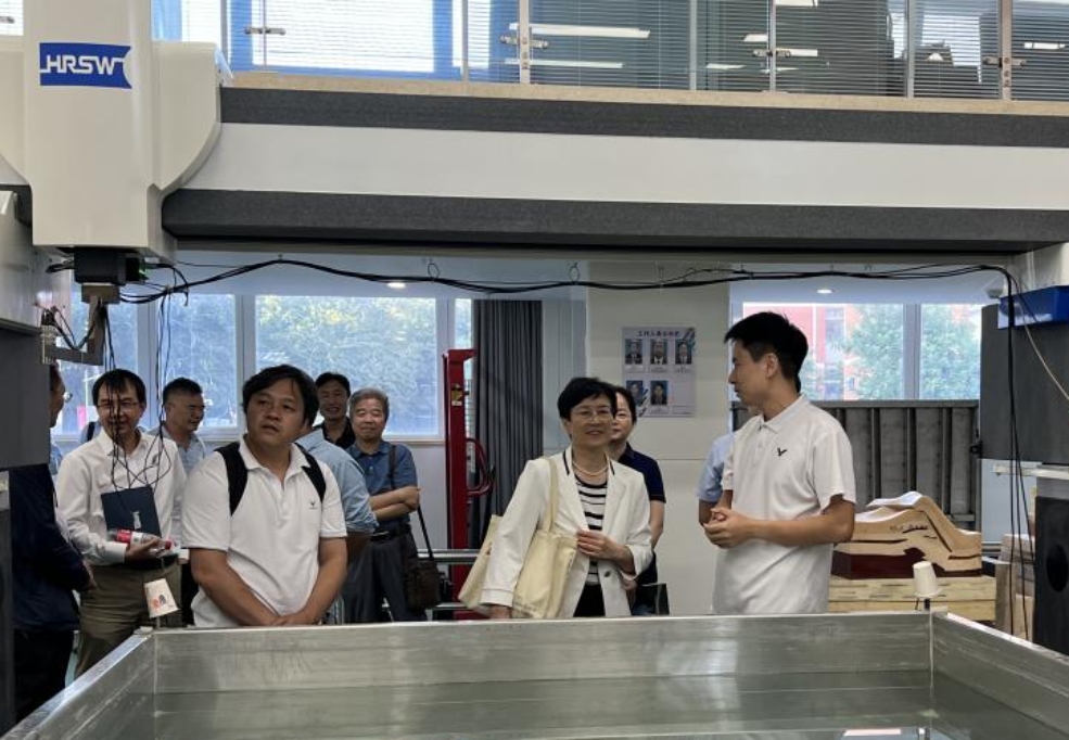 隨后,底院士參觀了階梯教室的地震物理模型實驗室、生排烴模擬實驗室、井孔地球物理實驗室、巖石力學實驗室、沉積-地層物理模擬(水槽)實驗室。在地震物理模擬實驗室中,底院士觀摩了儀器的操作流程和實驗現象,對模擬出的地質模型的準確度給與了高度評價。