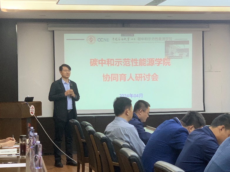 會上,薛亮副院長首先介紹了碳示范學院的成立背景、學院定位、發展歷程、學科建設、人才培養和合作交流情況。他強調,在能源行業綠色低碳轉型背景下,碳中和示范性能源學院作為推動“油氣+碳中和”領域人才培養和科技創新的重要陣地,肩負著培養復合型拔尖創新人才的使命。