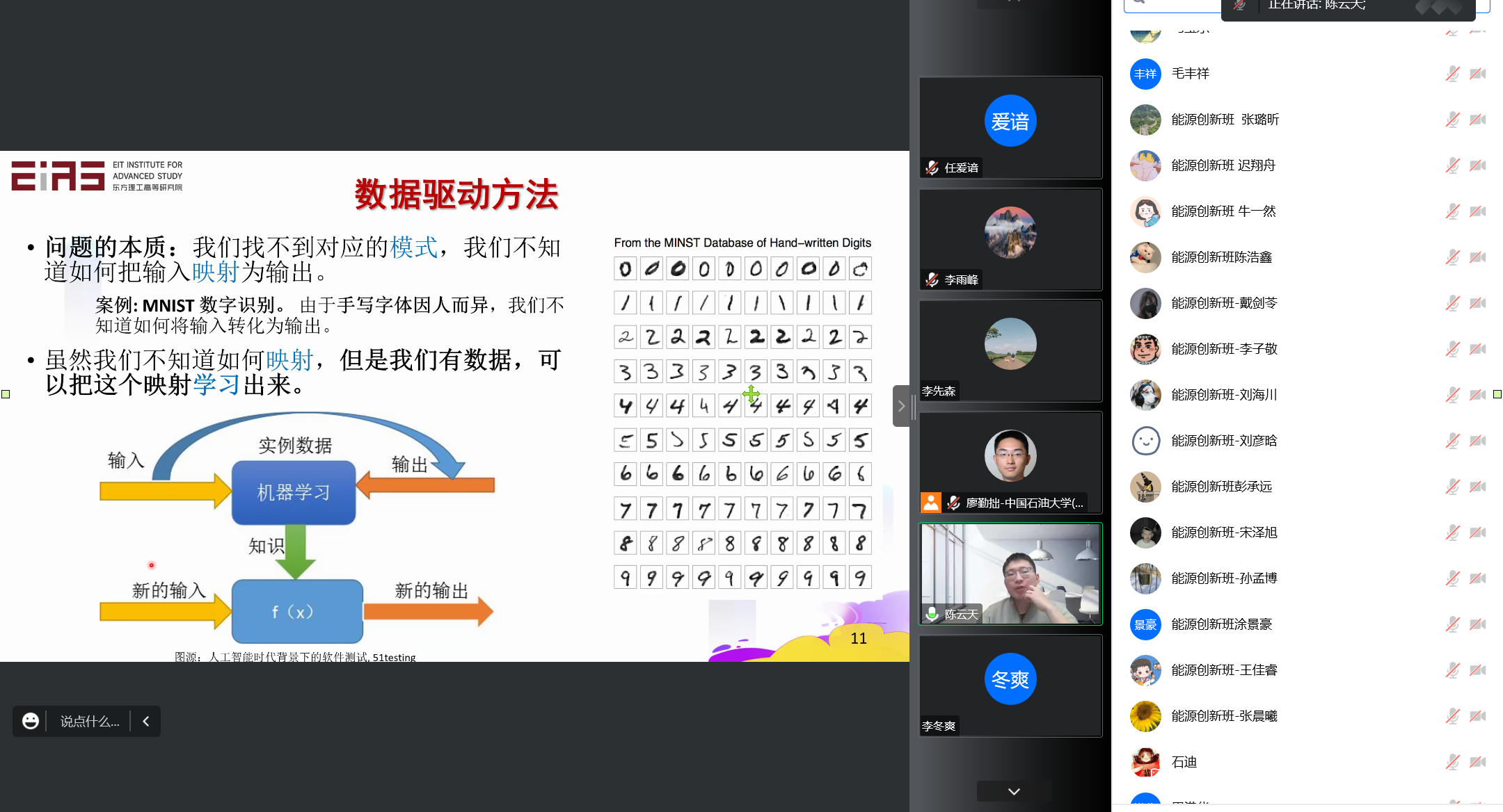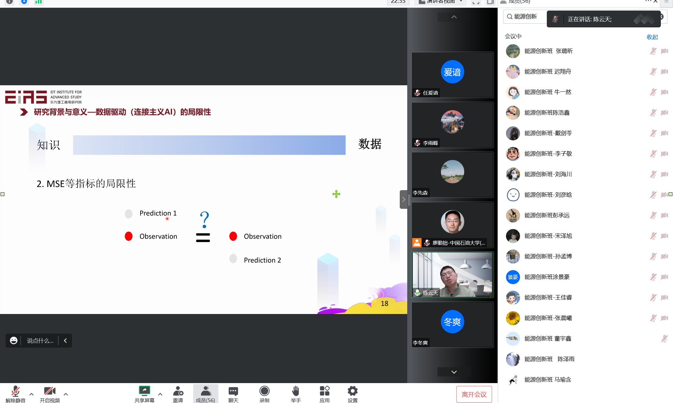 12月18日晚7:00,東方理工高等研究院助理教授(副高、博導)陳云天受邀進行“智慧能源與科學機器學習”線上學術報告,碳中和示范性能源學院組織能源創新班22-1參加會議。