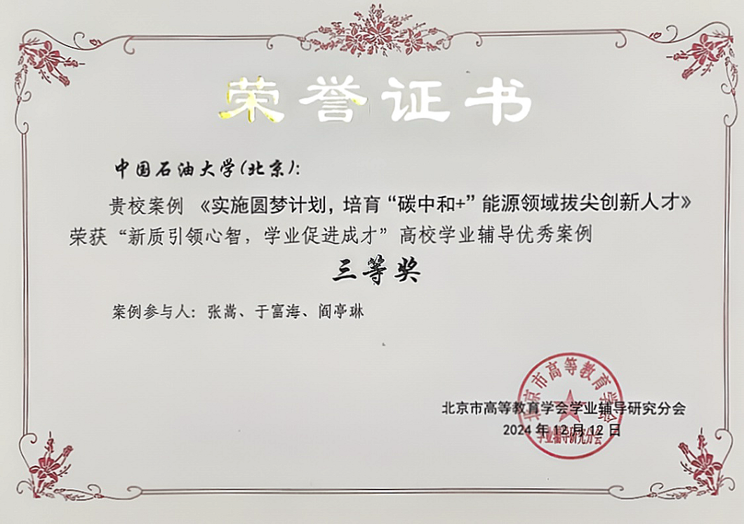 近日,北京市高等教育學會學業輔導研究分會公布“新質引領心智,學業促進成才”高校學業輔導優秀案例評審結果。夢溪書院報送的“實施圓夢計劃,培育‘碳中和+’能源領域拔尖創新人才”案例榮獲三等獎。