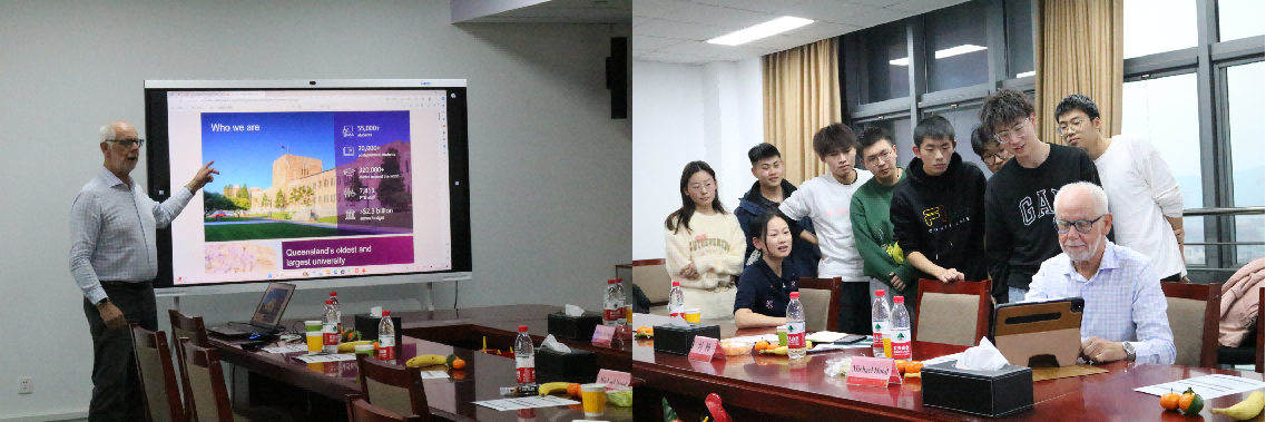 接著,Hood院士介紹了昆士蘭大學(xué)的發(fā)展歷史、學(xué)科優(yōu)勢(shì)、科研實(shí)力、對(duì)華合作等概況,并表示昆士蘭大學(xué)致力于教育創(chuàng)新和鼓勵(lì)創(chuàng)業(yè),期待未來(lái)能加強(qiáng)與我校的學(xué)生聯(lián)合培養(yǎng)、科學(xué)研究和交流與合作等。會(huì)后,面對(duì)我校師生的熱情提問(wèn),Hood院士進(jìn)行了耐心的解答,為同學(xué)們提出了寶貴的建議,并向同學(xué)們展示自己游學(xué)期間的照片,鼓勵(lì)同學(xué)們學(xué)好英文、開(kāi)拓眼界。