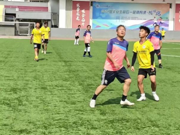 比賽分三節進行,每節35分鐘。首節雙方都以穩字當頭,踢的比較焦灼,學生隊中場傳控嘗試尋求破門機會,教師隊主打防守反擊,也取得不錯的效果,最終本節以0:0結束。第二節再戰,教師隊配合默契,連中兩球,比分來到2:0。第三節畢業生隊率先攻入一球,在比賽即將結束時,教工隊通過角球機會混戰中再入一球,比分最終定格在3:1。