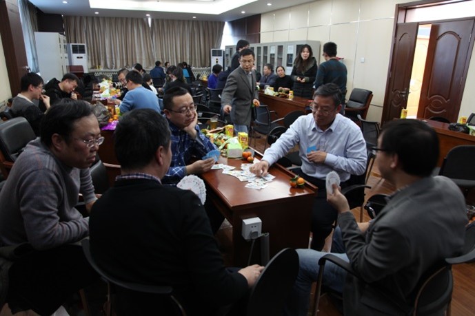此次茶話會上,進行了2019年退休教師榮休儀式,學院黨委書記孫學文為退休教師頒發了榮休紀念品;進行了三十年教齡教師紀念儀式,副院長兼工會主席陳春茂和副院長魏強為三十年教齡教師頒發了紀念證書和紀念品;進行了2019年新入職教師的介紹和交流。在隨后的娛樂環節,學院工會為老師們準備了精彩的吉他演奏、激動人心的幸運抽獎、斗智斗勇的撲克牌活動,茶話會現場一直洋溢著歡樂的節日氣氛。