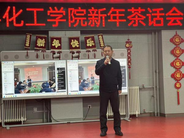 張香平院長首先介紹了學院這一年來取得的成績,之后王同奇書記在致辭中介紹了今年學校的突出貢獻,并且對化工學院在2024年的成就給予了肯定,同時給化工學院全體教職工致以誠摯的新年祝福。