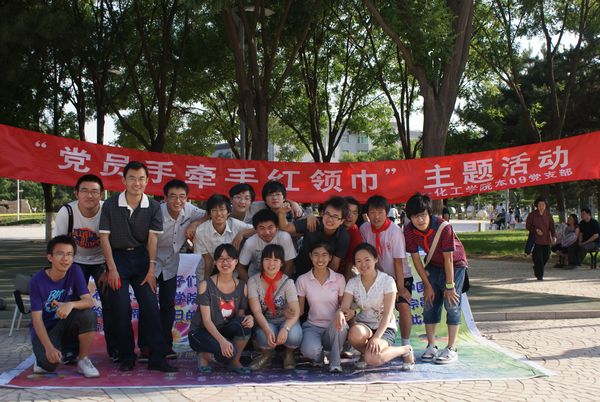 6月1日,國際兒童節到來之際,化工學院09級黨支部的全體黨員在來到亢山廣場,舉行了“黨員牽手紅領巾”主題活動。