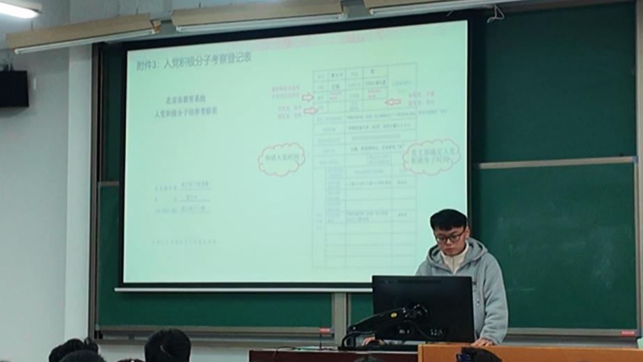 “行動(dòng)指南——清晰詳盡的入黨流程”環(huán)節(jié),化工本科第一黨支部學(xué)生書記許文軻結(jié)合流程圖與分步解析,完整呈現(xiàn)了從“遞交入黨申請(qǐng)書”至“正式黨員轉(zhuǎn)正”的全過程。他詳細(xì)解讀了班級(jí)團(tuán)支部推優(yōu)、入黨積極分子培養(yǎng)、發(fā)展對(duì)象考察、預(yù)備黨員轉(zhuǎn)正等關(guān)鍵環(huán)節(jié)的時(shí)間節(jié)點(diǎn)與材料規(guī)范,助力學(xué)員全面把握入黨路徑。