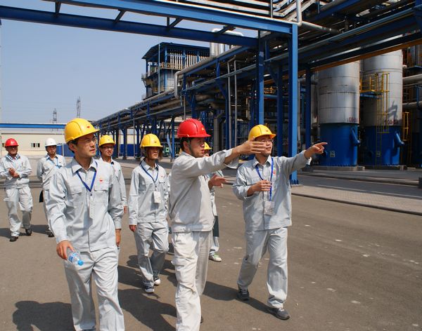 實踐期間,實踐團首先了解了公司概況,學習了其管理文化和經營理念;隨后在技術人員的陪同下,先后參觀了兩套大型化肥生產裝置和一套復合肥生產裝置,以及500萬噸煉油改擴建工程建設狀況。實踐過程中,每位成員都深入生產一線,熟悉工藝流程、設備結構、生產管理,針對相關技術與公司專業人員進行交流,并為公司上下熱火朝天的工程建設熱情所深深感染。