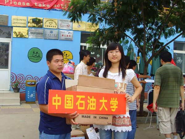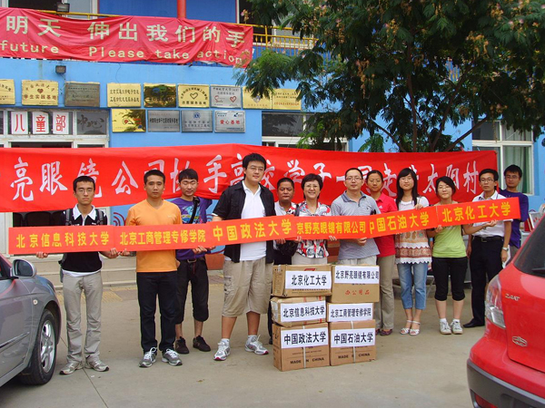 7月11日,化工學院學生社團聯合會代表攜手野亮眼鏡店及其它四所高校走進太陽村,為村里的孤兒們送去學習用品和資助金,并與村長張淑琴及孩子們進行了一系列交流活動。
