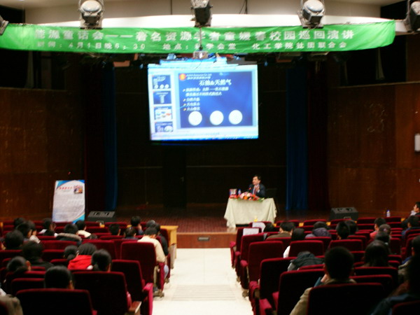 童媛春先生與我校師生進行了長達三個小時的交流,闡述了能源在當今世界的重要性,講述了能源從古代到現代的發展歷程,并論述了金融危機產生的原因和金融危機對能源領域潛在的威脅。他的論述從表面向本質層層深入,并結合自己在國內外的所見所聞、身行力踐,客觀而深刻的揭露了石油行業內幕,在對比中讓同學們看到中國石油業還與世界先進水平存在著一定差距,令同學們受益匪淺。同時童老師還虛心回答同學們提出的問題,并幫助同學們進一步剖析了“南海問題”和“俄格沖突”。整個會場上下互動,氣氛熱烈,一陣陣掌聲把講座推向高潮。童老師還全面的講解了當代大學生最關注的問題——就業問題,特別是金融危機時刻的就業問題。童老師笑著說:“很高興能和同學們一起探討我們國家乃至世界所面臨的嚴峻問題,看得到石油大學學生們都這樣的積極踴躍,真是我們國家的福氣啊!”