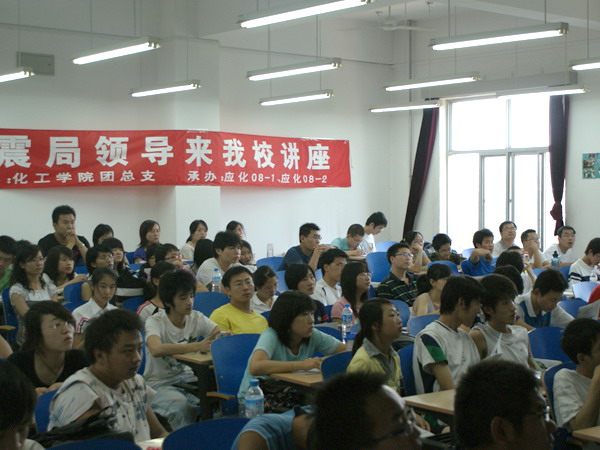 6月11日下午,由北京市昌平區地震局與我校化學科學與工程學院團委聯合主辦,化學科學與工程學院應用化學08-1、08-2團支部承辦的“心系災區,防震減災”講座在3教402舉行。講座邀請了昌平區地震局防衛科的張東亞同志為同學講解宣傳地震安全知識以及應急自救知識。化學科學與工程學院本科生、研究生寢室長以及各院系學生代表參加了本次講座。