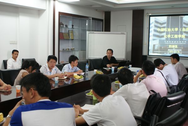 郭緒強教授首先講述了我校發展的歷史,并介紹了化工學院的基本信息、學術成果、最新的研究進展以及主要的研究方向,其中成果中介紹了包括PV旋風分離器在內的十項成果。在郭教授介紹完學院的情況后,對外校學員的生活學習情況進行了了解,并且為其解答了就辦學、科研、招生等方面提出的相關疑問,進一步加深了外校同學對我校的認識和了解。