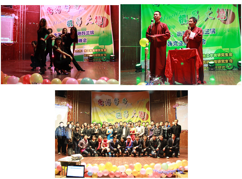 晚會開始,劉洛夫首先致辭,表示非常高興能夠參加三院研究生共同攜手舉辦的晚會,并希望廣大研究生能夠在多面加強交流并預祝晚會成功。接著,晚會在一段精彩的街舞中拉開序幕,動感的音樂,流暢嫻熟的舞蹈動作點燃起了同學們的熱情。隨后,熟悉動聽的歌曲,精彩熱辣的舞蹈贏得了全場觀眾的陣陣喝彩。中場互動游戲環(huán)節(jié)以及北化同學帶來的相聲表演,更是引得觀眾爆笑不斷。