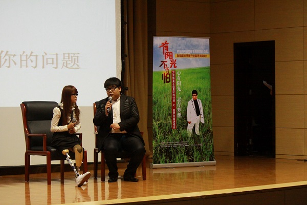 12月12日,“有陽光,不要怕”全國巡回勵志講唱會在我校中油大廈隆重舉行,星光大道07年度冠軍、盲人歌手楊光做客陽光講壇,為700余名青年師生分享了自己的心路歷程。