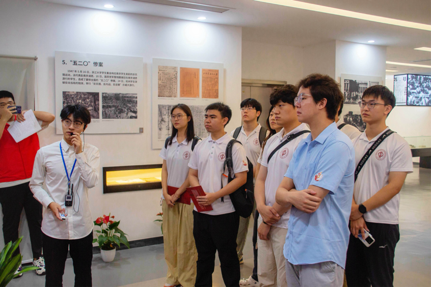 26日上午,實踐團來到杭州青年運動史館,追憶百年來杭州青年運動的崢嶸歲月和不朽事跡。館內按照歷史脈絡分為“杭州青年為建立新中國而斗爭”“杭州青年積極參與社會主義建設”“杭州青年在建設中國特色社會主義中建功立業”三個單元,通過文物資料、歷史照片、微縮浮雕、多媒體展示等多種形式,全面、客觀地展示了百年來杭州青年在中國革命、建設和改革開放各個歷史時期不懈奮斗的歷史經驗。實踐團成員們在講解員的帶領下,在照片、信件、遺物等各種文物中徜徉,成員們頻頻駐足,對文物背后的歷史故事進行了詳細的了解與記錄,并和老師展開了深入交流與探討。在聲援五四運動、掀起“一師風潮”、建立中國社會主義青年團杭州支部、投身抗日洪流、抗美援朝、開展土地革命等等青年運動中,大家深刻體悟到革命時期進步青年們不畏強權、追求真理的愛國精神,深刻感受到社會主義建設時期青年們不怕吃苦、積極參與新中國建設的愛國熱情。無數青年把青春的足跡鐫刻在杭州解放與建設的征程中,譜寫出了一曲曲雄渾激昂的青春之歌。