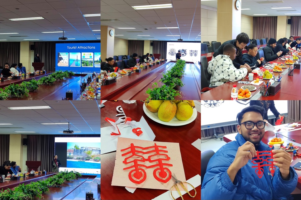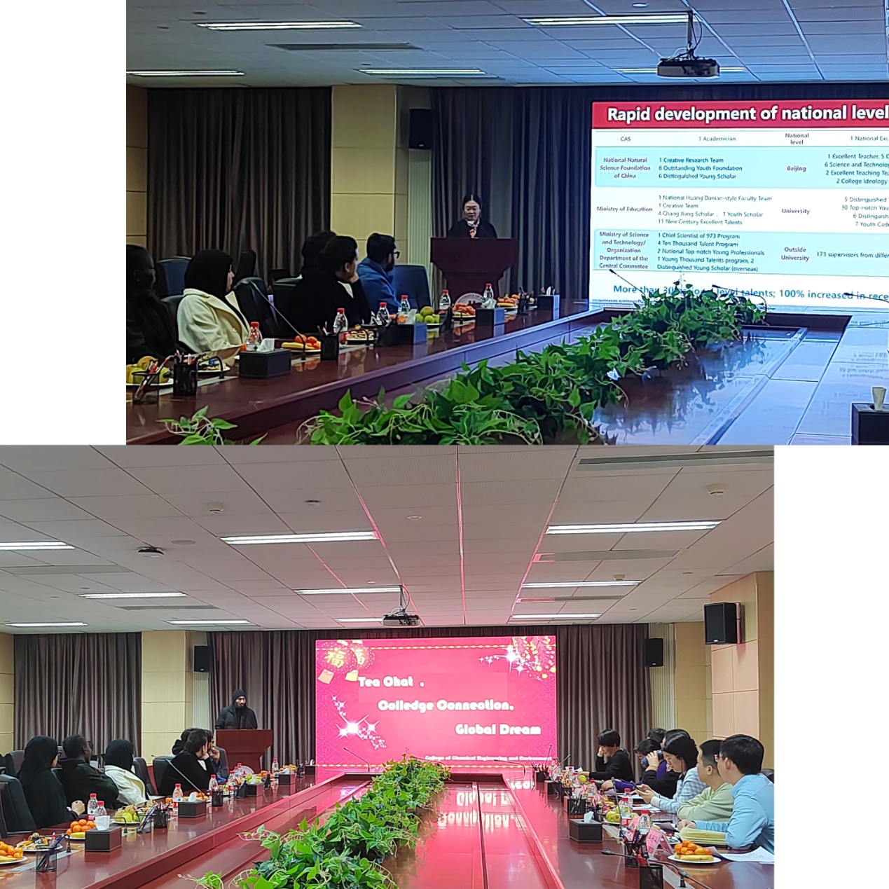 本次活動由化工學院商輝教授主持。商教授熱情介紹了活動背景和參會的9名教師和10名留學生。院長張香平教授首先致辭并詳細介紹了學院的發展歷程、學科特色、研究方向以及國際合作情況等,她對留學生為學院所做的貢獻表示感謝,并表達了新年的祝福,期望他們都能在學業上取得重要成果。隨后,留學生代表古浩瑞上臺發言,分享了他的成長經歷,表達了對學院的感謝,并對學院的留學生工作提出了建議和期望。