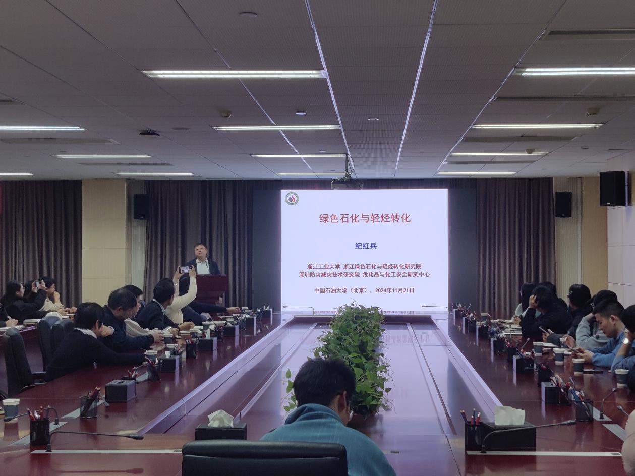 11月21日上午,“綠色石化與輕烴轉化”學術報告會暨2025國家自然科學基金啟動會順利舉辦。本次報告由浙江工業大學教授,浙江綠色石化與輕烴轉化研究院院長、深圳防災減災技術研究院危化品與化工安全研究中心主任,中國化工學會會士和國家重點研發計劃項目首席科學家紀紅兵教授主講。化學工程與環境學院、重質油全國重點實驗室、理學院等青年教師及研究生現場學習,報告會由化學工程與環境學院副院長朱文帥主持。