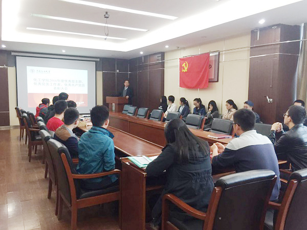 4月19日下午,化學工程學院在化工樓B座403會議室舉辦了2016年度化工學院優秀黨支部、優秀黨務工作者、優秀共產黨員頒獎大會,化學工程學院黨委書記郭緒強、化學工程學院黨委副書記胡建茹以及全體學生黨支部書記和優秀黨員代表參加了大會。