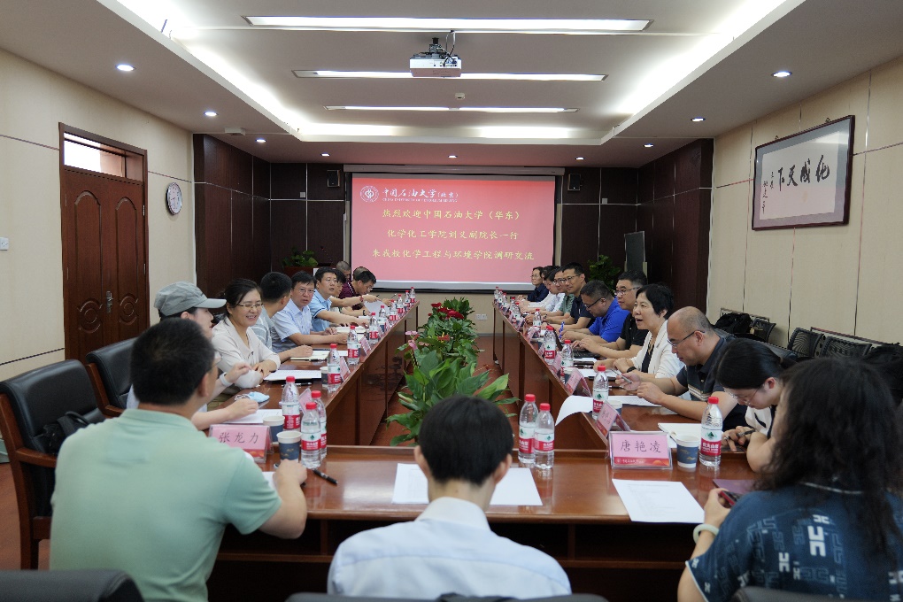 7月3日上午,中國石油大學(華東)化學化工學院教學副院長劉義一行13人赴我院開展本科教學調研,學院本科教學副院長姜桂元、化學工程與工藝專業負責人孟祥海、能源化學工程專業負責人吳志杰、環境科學專業負責人及環境科學與工程系主任王新偉、化學工藝系主任商輝、化學工程系主任劉夢溪、能源與催化工程系主任代小平、實驗教學中心主任鄂承林和環境科學與工程系副主任王鑫等參加了調研交流會。