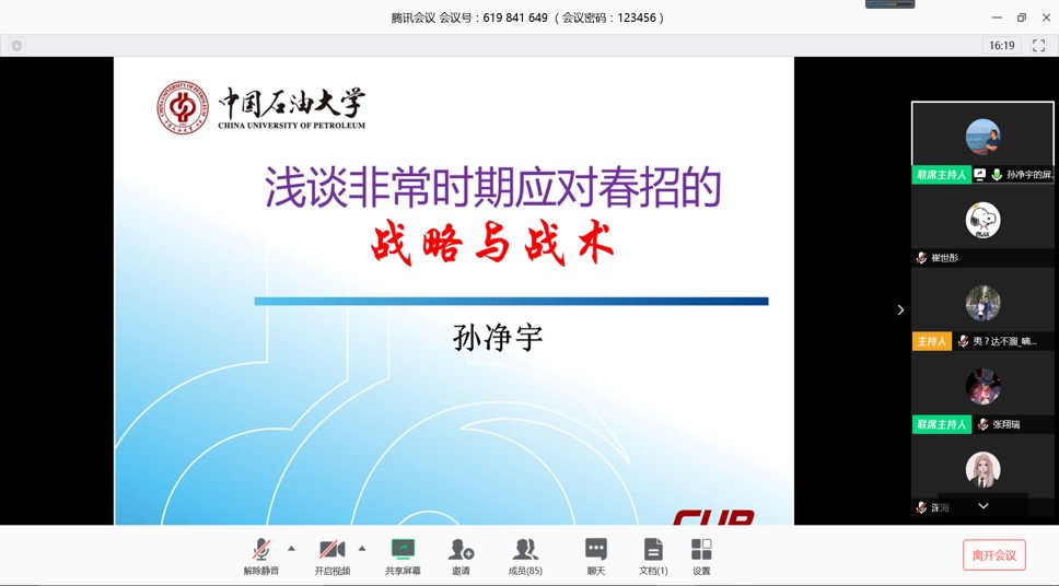 3月7日,化學工程與環境學院2020屆線上考研復試分享會通過騰訊會議的形式舉行。考研外校和考研本校的優秀學生代表中國科學院過程工程研究所的趙莉紅同學和化學工程與環境學院的陳弘男同學,與40余名2016級考研的本科應屆畢業生進行了分享交流。趙莉紅介紹了研究院所和高校在考研復試工作上的差異性,強調要結合自己所報考學校的政策規定,對癥下藥、有的放矢,并從親身經歷和感受出發,分享了在中科院復試過程中從前期準備到聯系導師,再到最終面試各個環節的細節和經驗。陳弘男結合自身經歷,詳細地講解了如何關注復試信息、如何進行前期準備、如何在復試中更好發揮等一系列實際問題。參與同學還與學長學姐進行了“云”互動,展開了更為具體、更有針對性的交流討論。大家紛紛表示通過活動收獲了寶貴的備考經驗,增強了深造信心,深感受益匪淺。