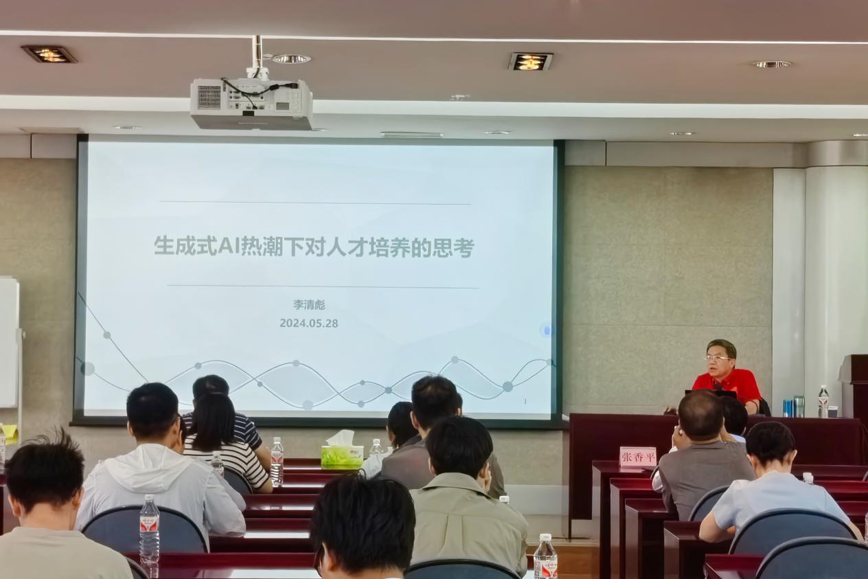 5月28日上午,化學工程與環境學院聯合教務處舉辦了一場關于“生成式AI熱潮下對人才培養的思考”的專題報告會。此次報告會特邀了中國化工學會會士、知名專家李清彪教授作為主講嘉賓。教務處、化學工程與環境學院師生代表等共同出席了此次活動,報告會由教務處處長張永學教授主持。