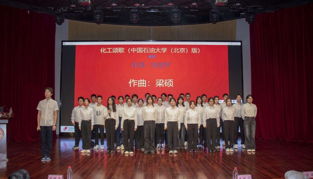 隨后,中國石油大學(北京)師生共同獻唱由朱世平教授作詞,化工學院青年教師梁碩譜曲的《化工頌歌》。