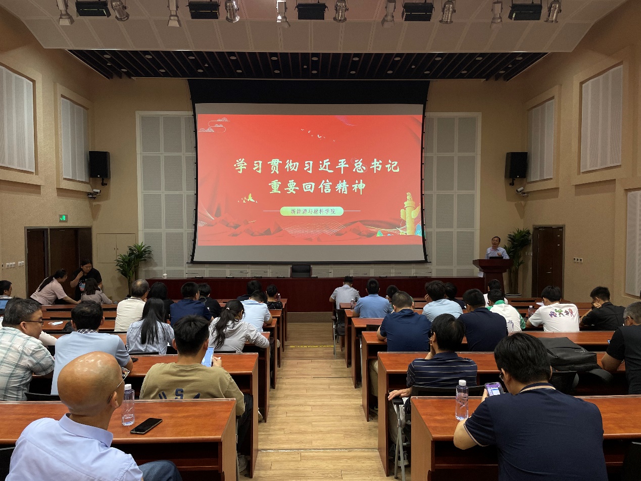 隨后,學院開展主題教育讀書班集中學習,黨委書記葉海木向全體教職工傳達了習近平總書記重要回信精神,從背景、內容、內涵等方面深入分析了回信的重要意義。與會人員集中收看了中央電視臺《新聞聯播》有關回信的報道。葉海木指出,近三年來的兩封回信,體現了習近平總書記對學校的高度肯定,也賦予了每一位石大人新的責任與使命。全院上下要認真學習回信內容,從重要回信中汲取力量,積極投身到學院各項事業的建設發展中去。