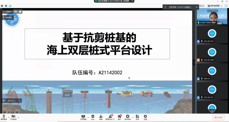 設(shè)計制作組線上答辯環(huán)節(jié),來自中國海洋石油集團有限公司、中國石油天然氣集團有限公司的12位評審專家擔任評委。各參賽隊伍播放模型測評視頻,并從裝置結(jié)構(gòu)、設(shè)計思路、實測數(shù)據(jù)等方面對參賽作品進行了講解。各評審專家從作品的內(nèi)容、科技創(chuàng)新性以及工程實踐性等方面進行提問,并對各參賽隊伍作了點評。