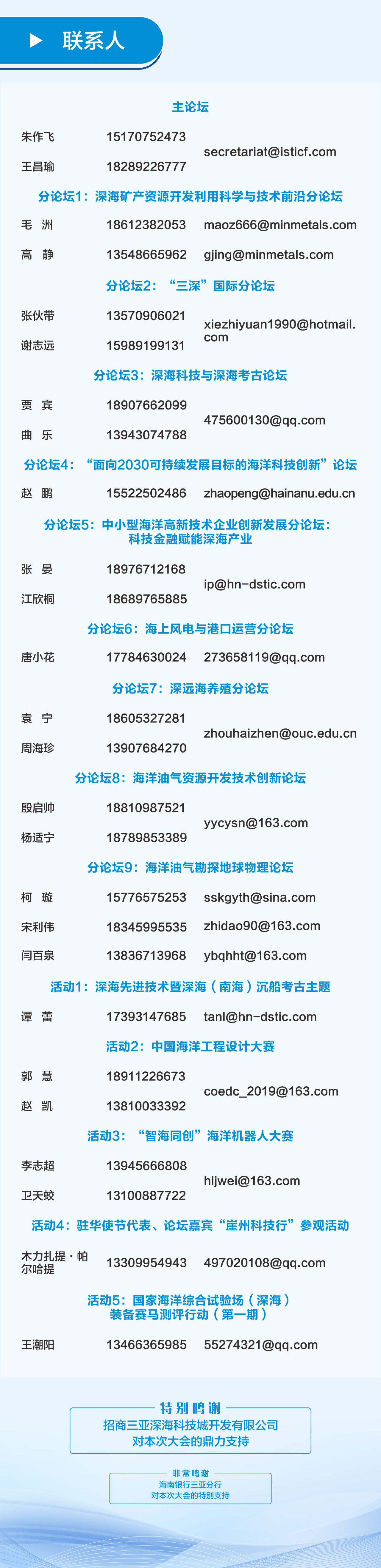 地點:三亞崖州灣科技城深海科技創新公共平臺10號樓多功能廳(401)