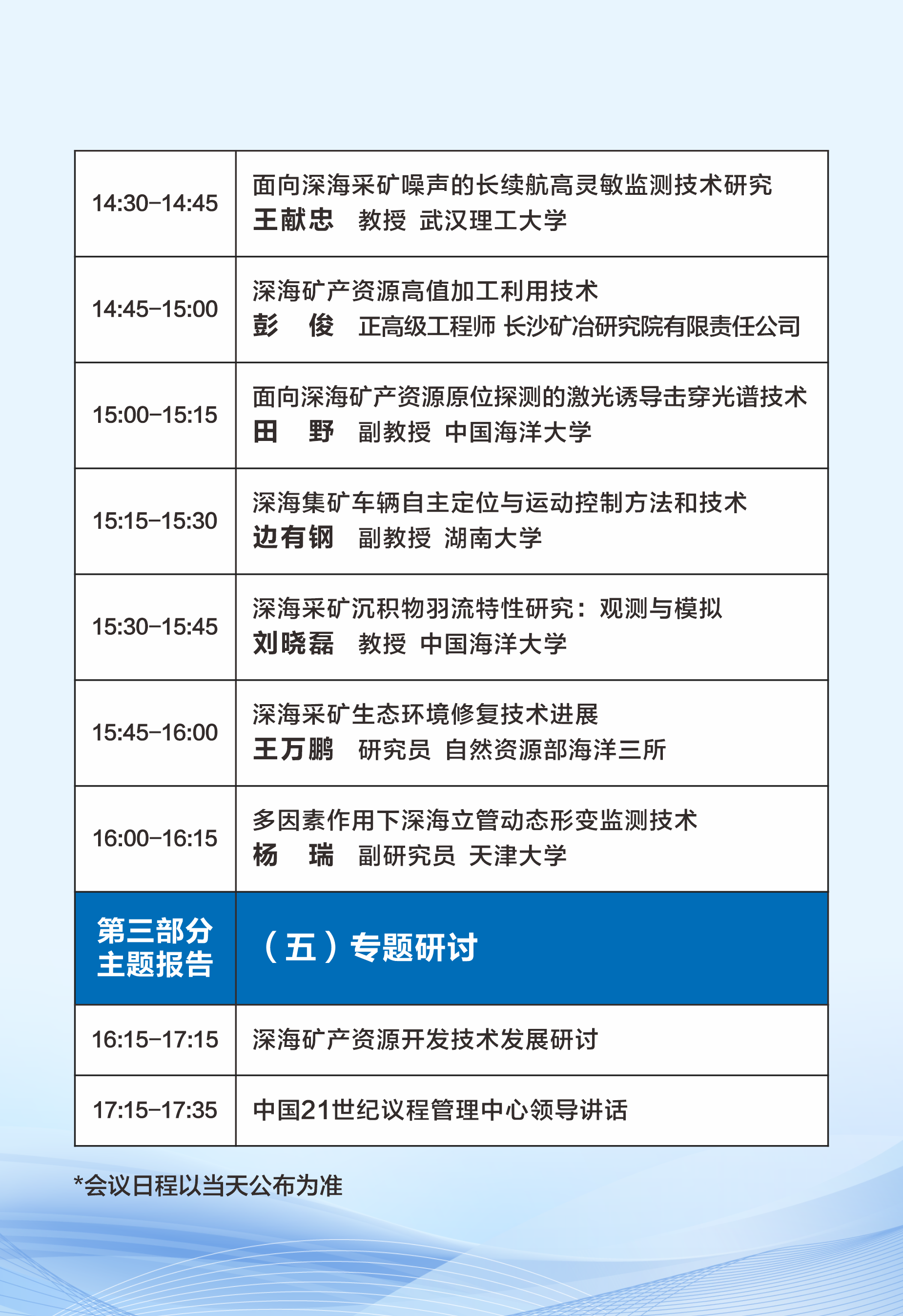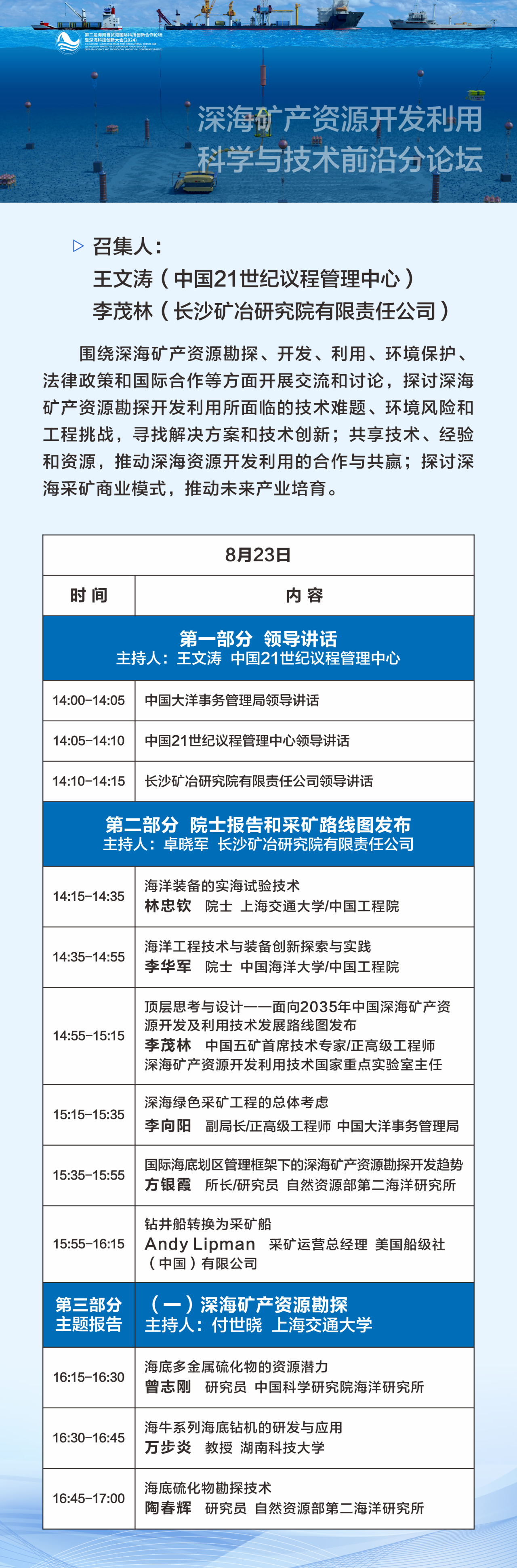 一、深海礦產資源開發利用科學與技術前沿分論壇