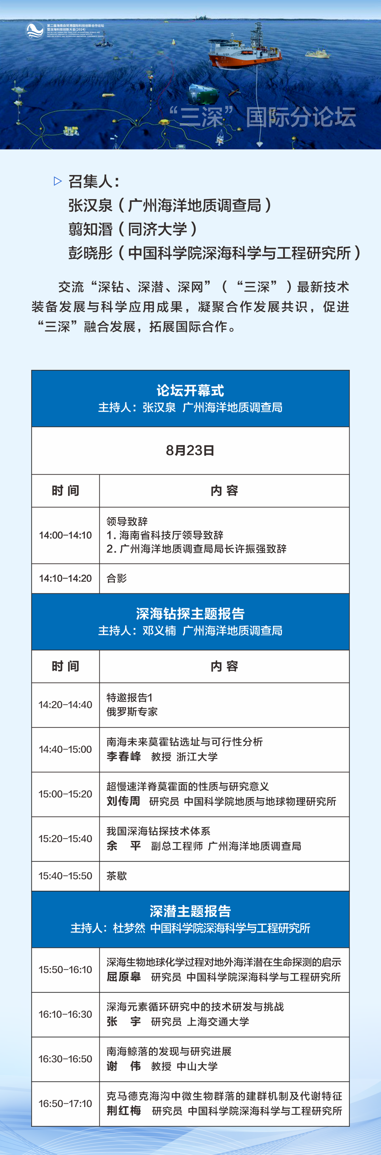 地點:三亞崖州灣科技城深海科技創新公共平臺10號樓多功能廳(414)