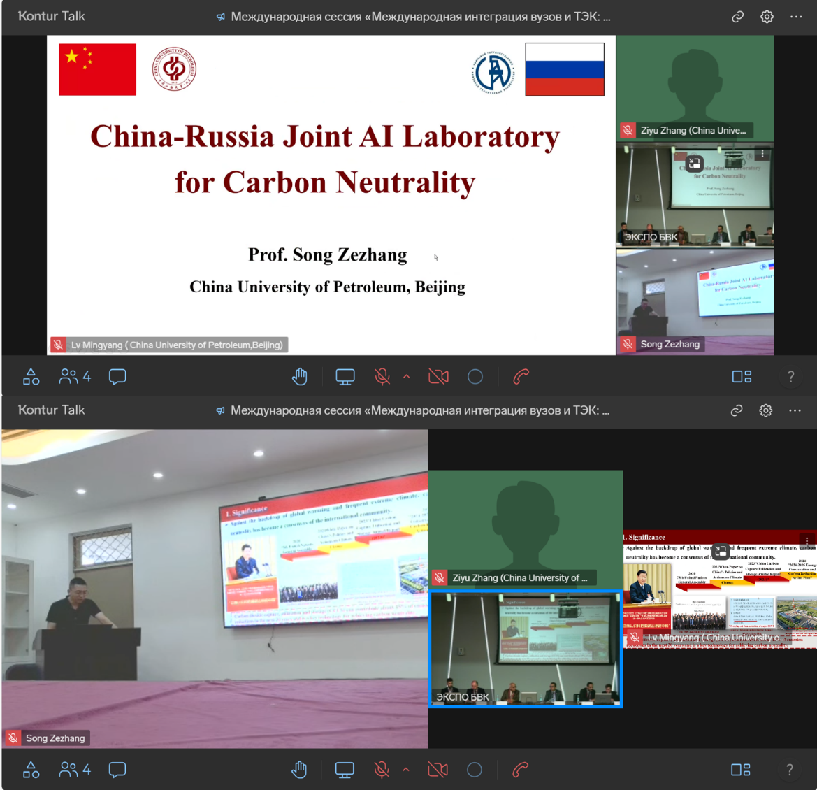 在圓桌會議“International Integration of Universities and Fuel & Energy Complex: Paths to Sustainable Development”上,宋澤章做了題為“China-Russia Joint AI Laboratory for Carbon Neutrality”的特邀報(bào)告,展示了由中國石油大學(xué)(北京)與烏法石油技術(shù)大學(xué)于2023年10月成立的中俄碳中和AI聯(lián)合實(shí)驗(yàn)室的建設(shè)進(jìn)展以及未來規(guī)劃。共同參加圓桌會議的還有來自俄羅斯、巴勒斯坦、阿爾及利亞、哈薩克斯坦、韃靼斯坦共和國等5個(gè)國家6所高校的校長和院長,巴勒斯坦教育部總干事。