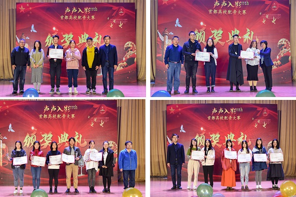 本次大賽包括必配表演與即興配音兩個環節。參賽隊伍重新演繹了近年來叫好又叫座的電視劇、電影,同時切合“重溫紅色經典”主題,選取了《建黨偉業》《共和國血脈》《烈火軍校》《那年那兔那些事兒》等紅色影視作品片段,為廣大師生帶來一場聽覺盛宴。經過激烈比拼,北京建筑大學學生代表隊獲一等獎,中國戲曲學院、北廣播音主持藝術學院學生代表隊獲二等獎,中國人民大學、對外經濟貿易大學、北京科技大學、中國石油大學學生代表隊獲三等獎。北京理工大學、首都經濟貿易大學、中國石油大學、北京科技大學、中國政法大學、首都醫科大學、對外經濟貿易大學學生代表隊分別獲最佳表達獎、最具創意獎、最具魅力獎、最佳組織獎、最佳臺風獎、最佳編排獎、最佳團隊獎。期間,3位評委還與觀眾互動,即興表演了各自的經典配音片段,將現場氛圍推向高潮。