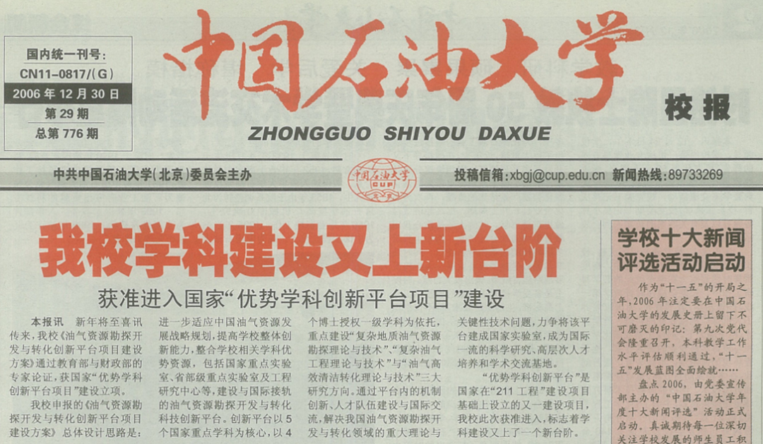 “優勢學科創新平臺”是國家在“211工程”建設項目基礎上設立的又一建設項目。2006年12月,中國石油大學《油氣資源勘探開發與轉化創新平臺項目建設方案》通過教育部與財務部的專家論證,獲國家“優勢學科創新平臺項目”建設立項,標志著學校學科建設又上了一個新的臺階。